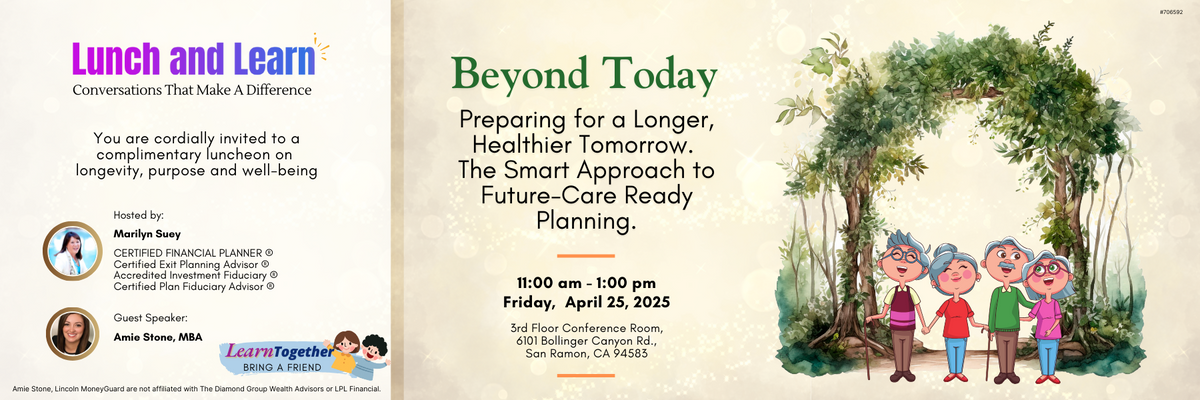 Join us for "Beyond Today: Preparing for a Longer, Healthier Tomorrow," a free luncheon event focused on healthy aging strategies, long-term care planning, and preserving your financial future while you can.