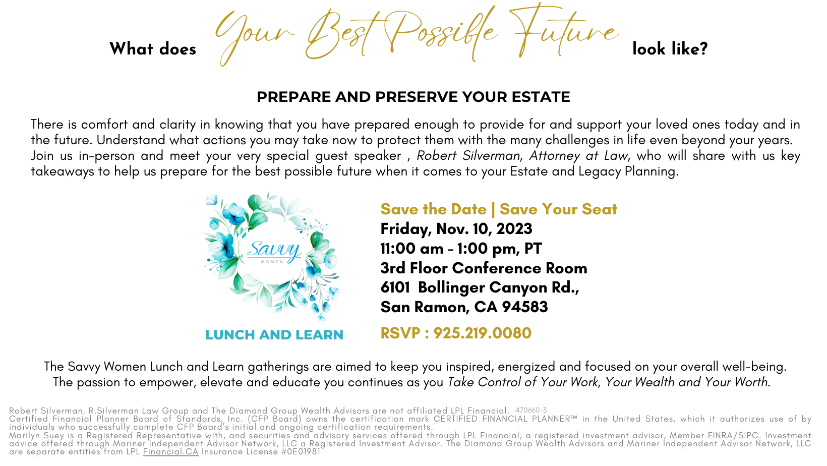Savvy Women Lunch & Learn(In Person) - Estate Planning With Robert Silverman, Attorney At Law